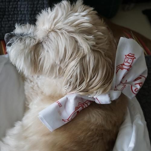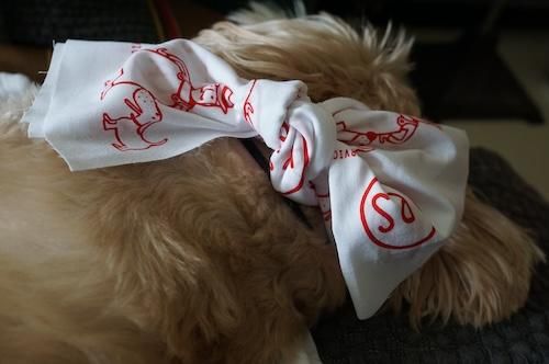 サイズは一般的な人間用の手ぬぐいサイズですが、小さなワンコさんにはカットしてのご使用もオススメしております。リピートプリントなのでカットしても違和感はありません。