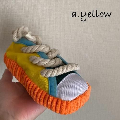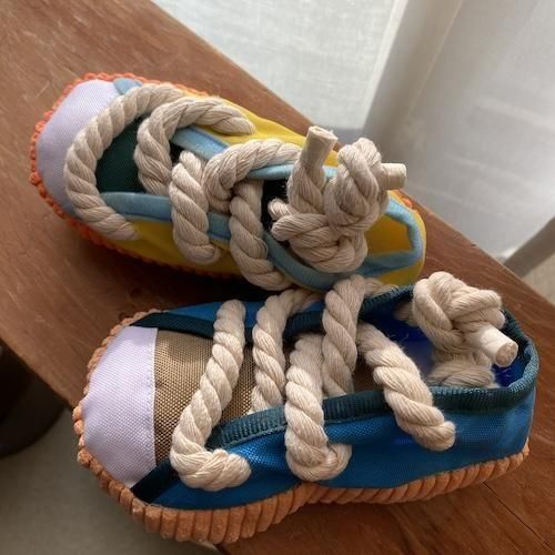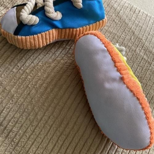 靴底は中綿入りで靴ひものロープも優しい噛み応え。
